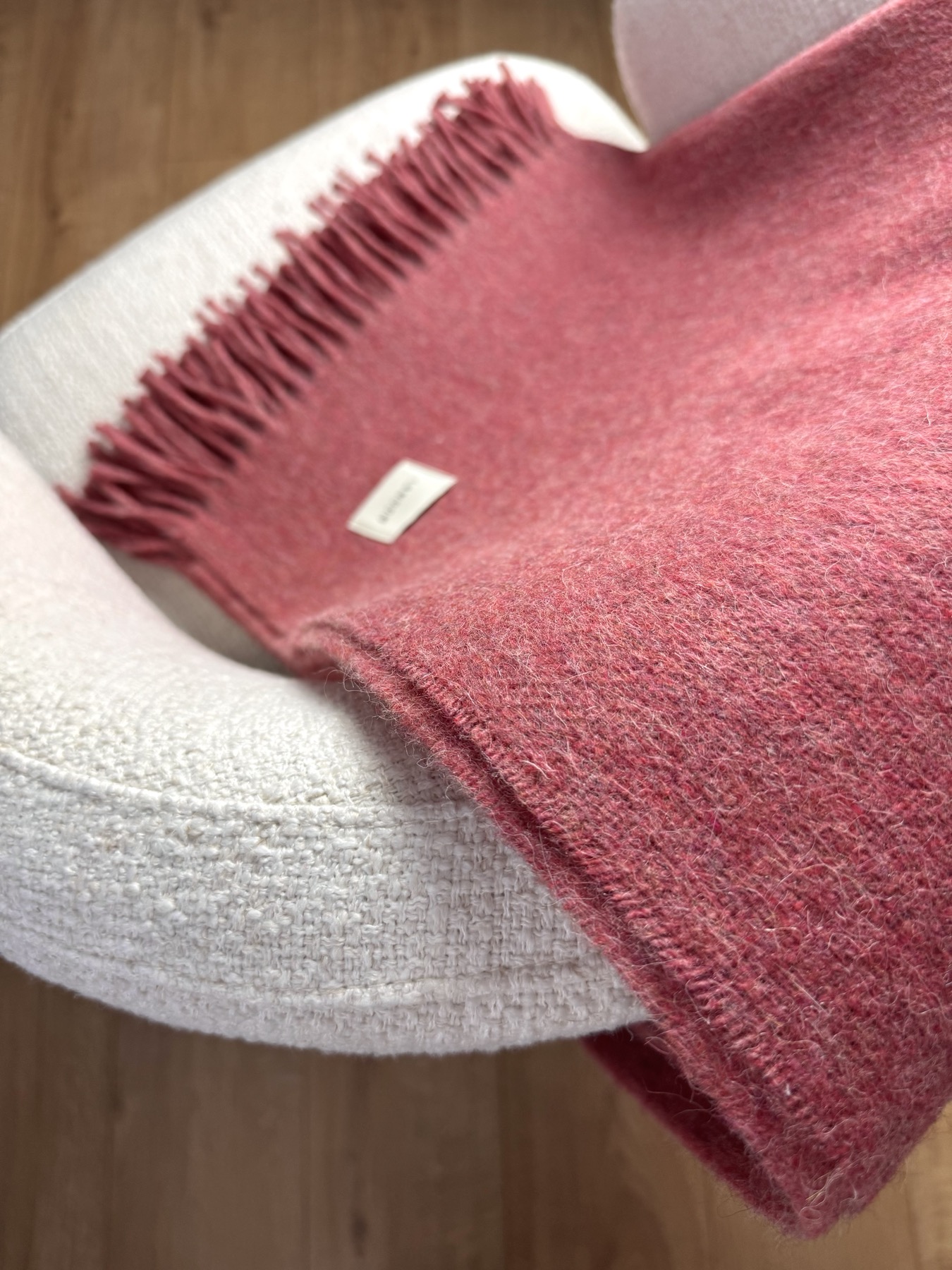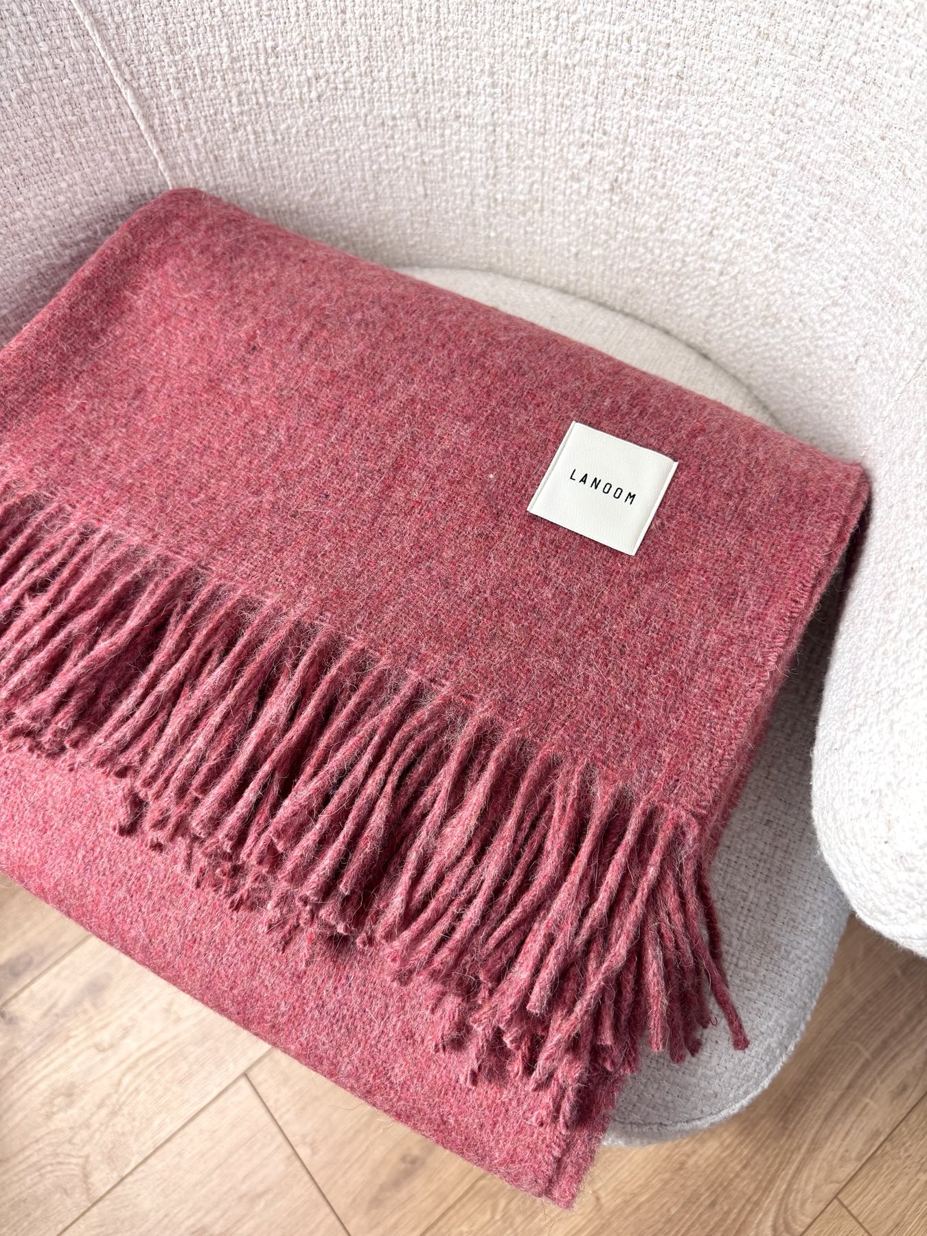 Gruby koc z alpaki i wełny w odcieniu bordowego melanżu to wyjątkowy akcent w każdym wnętrzu — łączy w sobie elegancję, komfort i szlachetny minimalizm.