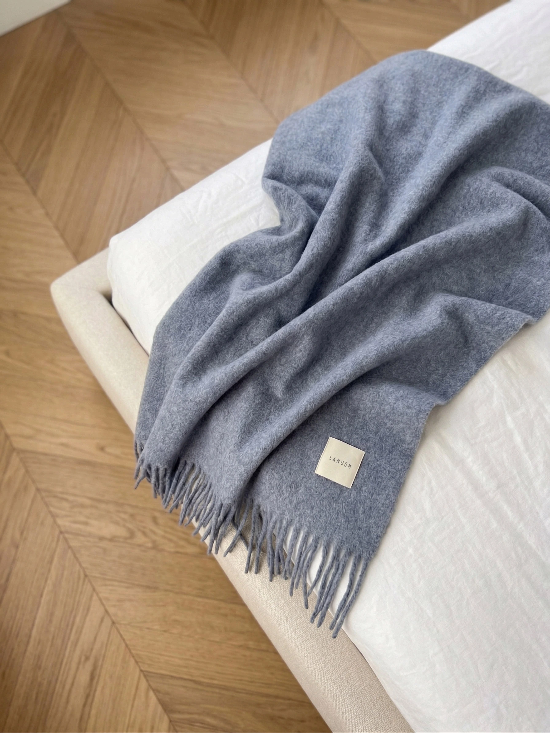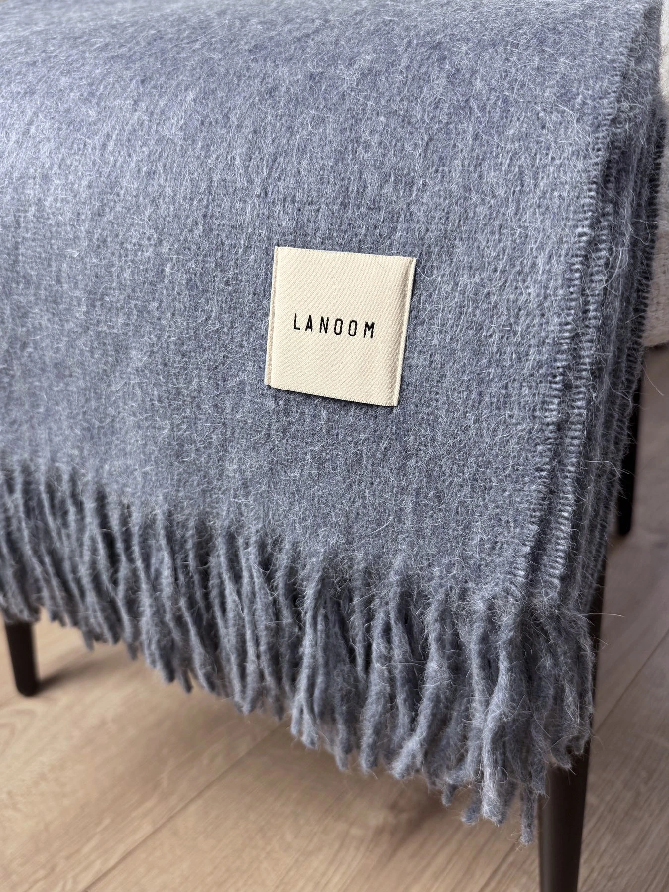 Całość dopełnia kwadratowa metka żakardowa z tkanym logo LANOOM, która stanowi subtelny, designerski detal podkreślający ekskluzywny charakter produktu.