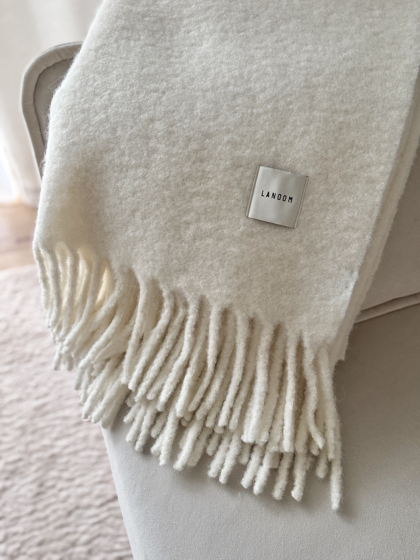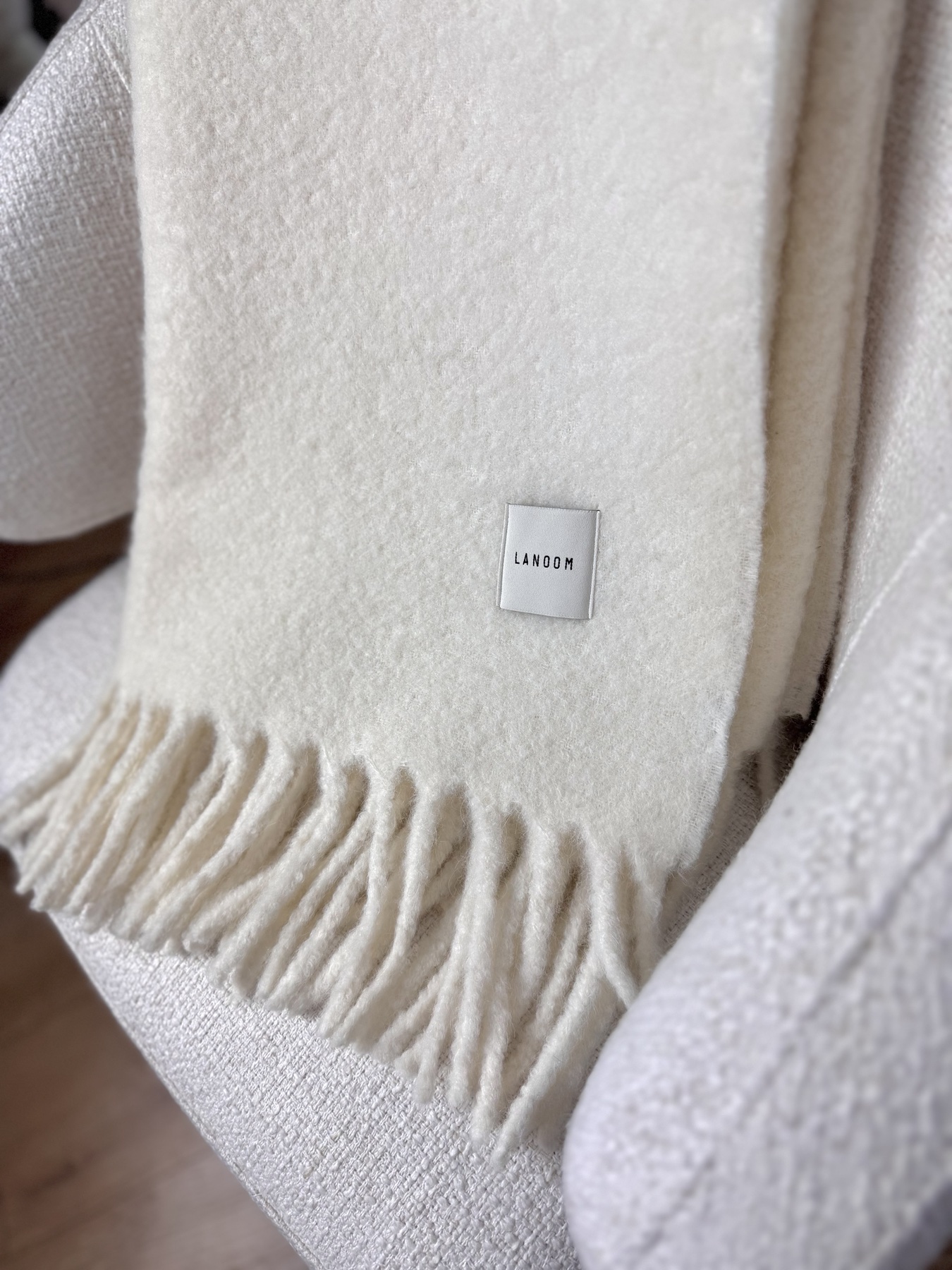 Koc Alpaca Bouclé w kolorze ecru to esencja przytulności i elegancji, która doskonale wpisuje się w najnowsze trendy wnętrzarskie.