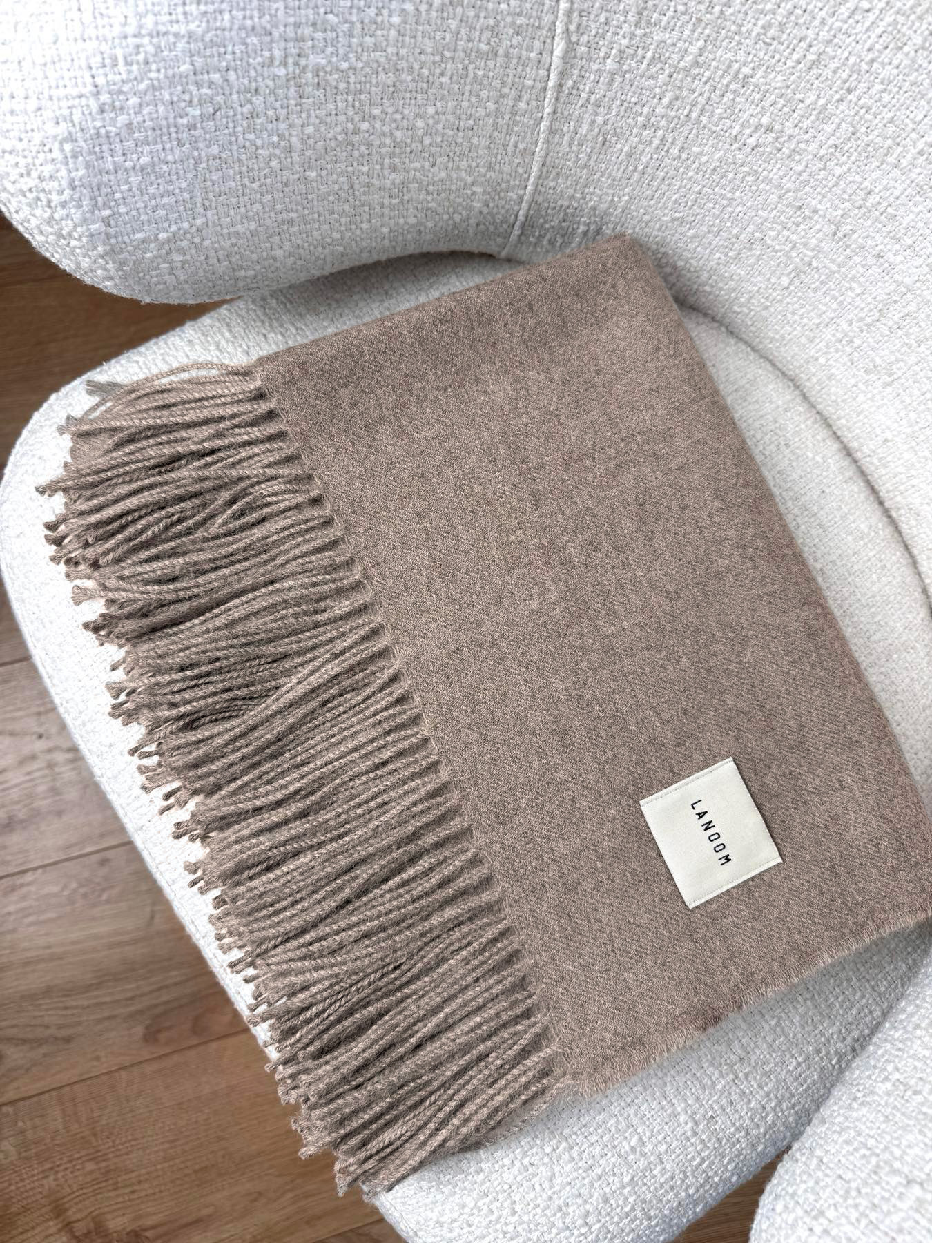 Luksusowy koc z 100% baby alpaki w kolorze jasnego brązu to połączenie wyjątkowej lekkości, delikatności i ponadczasowej elegancji.