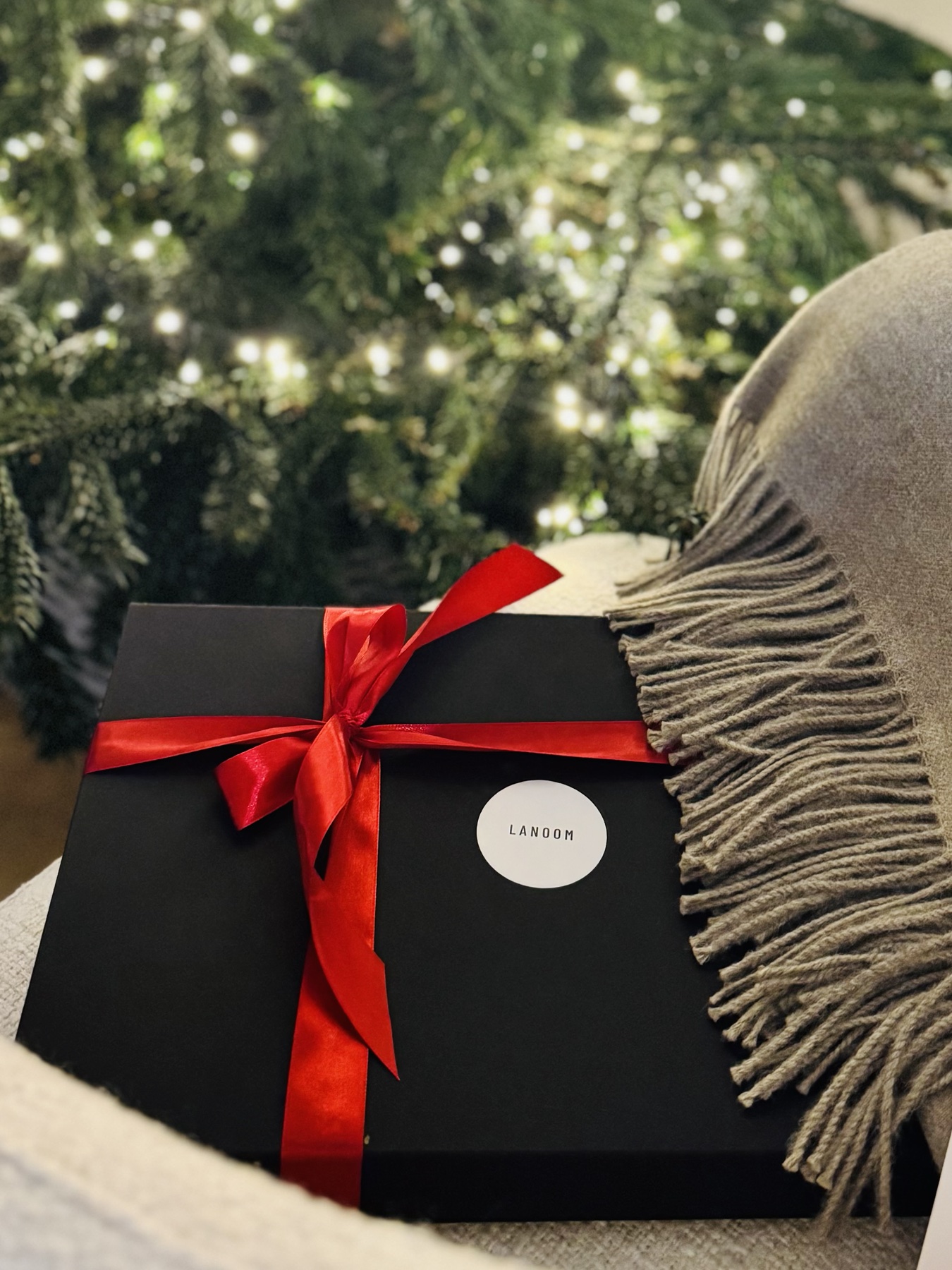 Całość dopełnia kwadratowa metka żakardowa z tkanym logo LANOOM, która stanowi subtelny, designerski detal podkreślający wyjątkowy charakter produktu.